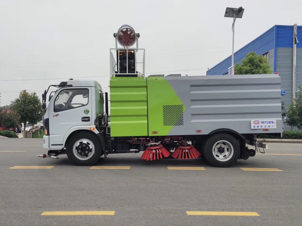 1.采用吸掃混合的方式收集垃圾,濕式除塵、電液,液壓傾翻卸料的作業(yè)方式對路面進(jìn)行清掃作業(yè)。