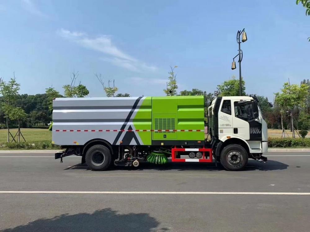 高效真空洗掃車是我公司自行設計開發、具有自主知識產權、國際**技術水平的新一代路面、路緣清洗、清掃及噴霧降塵的專用設備。該款洗掃車結合了掃路車及高壓清洗車的功能特點,在作業時利用掃刷將地面垃圾掃向車內側,路面上的頑固附著物由高壓噴水桿噴出的水流沖起,再由吸盤吸入垃圾箱貯存。具有綠色環保、功能齊全、設計合理、能耗低、清洗范圍大、使用壽命長等特點。