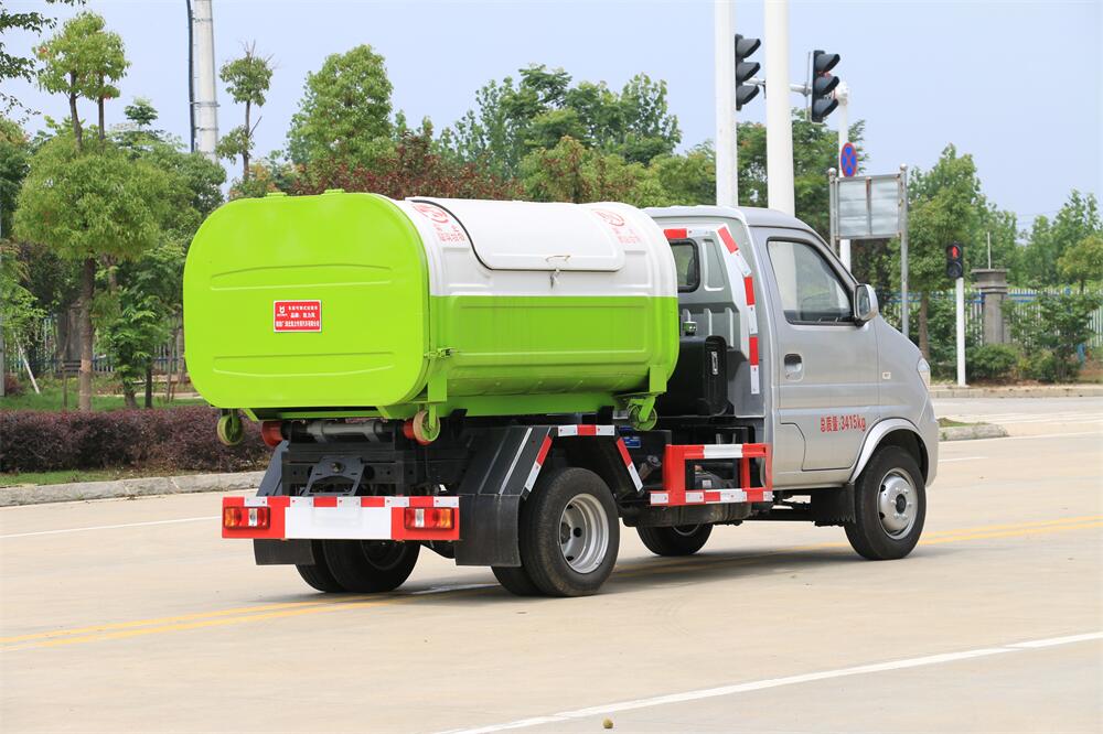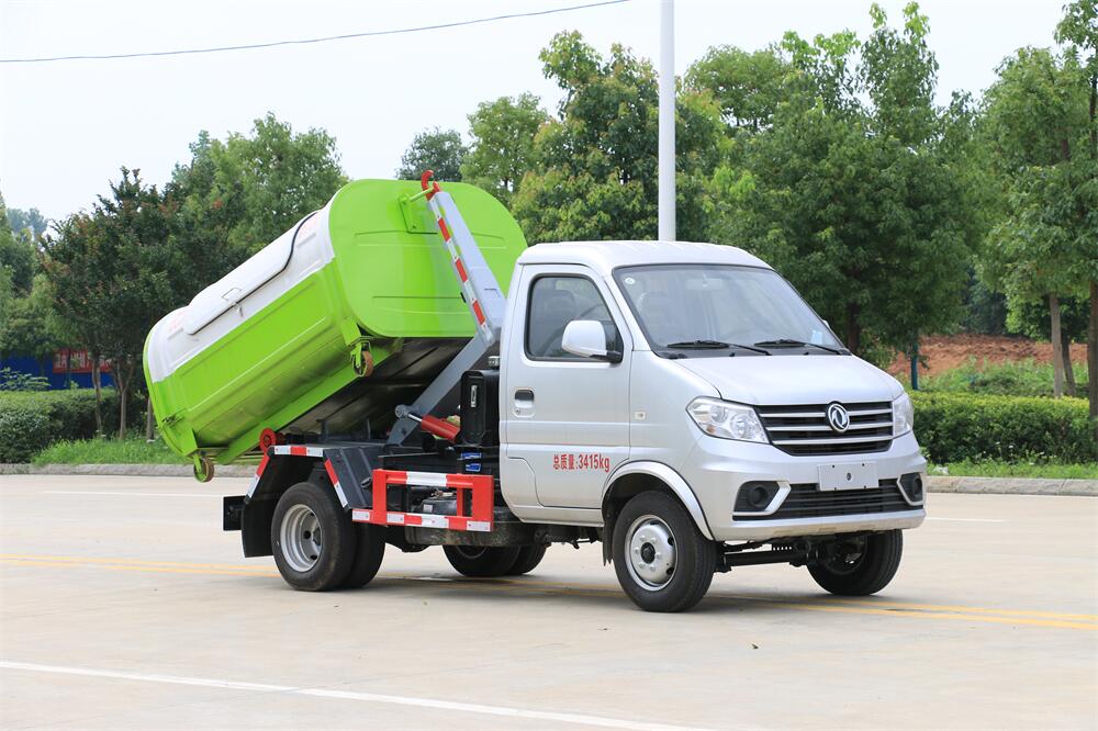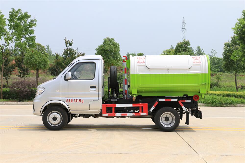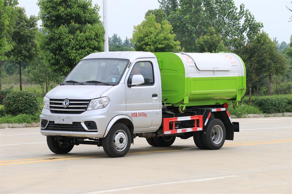 勾臂式垃圾車(車廂可卸式垃圾車)介紹: 車廂可卸式垃圾車又叫拉臂式垃圾車,是一種采用高新設計可伸縮的鉤臂,實現垃圾廂的二次吊裝,自吊上放下,可自行傾倒垃圾的環衛設備。 拉臂式垃圾車結構簡單,操作穩定方便,裝卸效率高,機械化程度高,節省人力。鉤臂垃圾車一車可帶多個垃圾廂,在裝卸的運輸過程中可有效地避免二次污染。 拉臂垃圾車采用高新設計可擺動的鉤臂,垃圾箱由框架、開啟油缸、滑輪、后門和若干加強框架與鋼板焊接而成。調換貨廂快捷方便,貨廂上帶蓋(倒垃圾時可翻開),鉤臂垃圾車垃圾廂體可選用碳鋼、不銹鋼材質、內部采取環氧樹脂防腐處理,改裝部分與原車底盤為可分離式,維修方便且保持了原車的機動性及行駛性能。