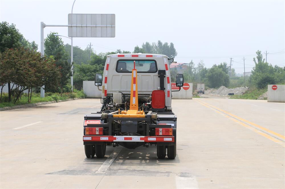 勾臂式垃圾車(車廂可卸式垃圾車)介紹: 車廂可卸式垃圾車又叫拉臂式垃圾車,是一種采用高新設(shè)計可伸縮的鉤臂,實現(xiàn)垃圾廂的二次吊裝,自吊上放下,可自行傾倒垃圾的環(huán)衛(wèi)設(shè)備。 拉臂式垃圾車結(jié)構(gòu)簡單,操作穩(wěn)定方便,裝卸效率高,機械化程度高,節(jié)省人力。鉤臂垃圾車一車可帶多個垃圾廂,在裝卸的運輸過程中可有效地避免二次污染。 拉臂垃圾車采用高新設(shè)計可擺動的鉤臂,垃圾箱由框架、開啟油缸、滑輪、后門和若干加強框架與鋼板焊接而成。調(diào)換貨廂快捷方便,貨廂上帶蓋(倒垃圾時可翻開),鉤臂垃圾車?yán)鴰w可選用碳鋼、不銹鋼材質(zhì)、內(nèi)部采取環(huán)氧樹脂防腐處理,改裝部分與原車底盤為可分離式,維修方便且保持了原車的機動性及行駛性能。