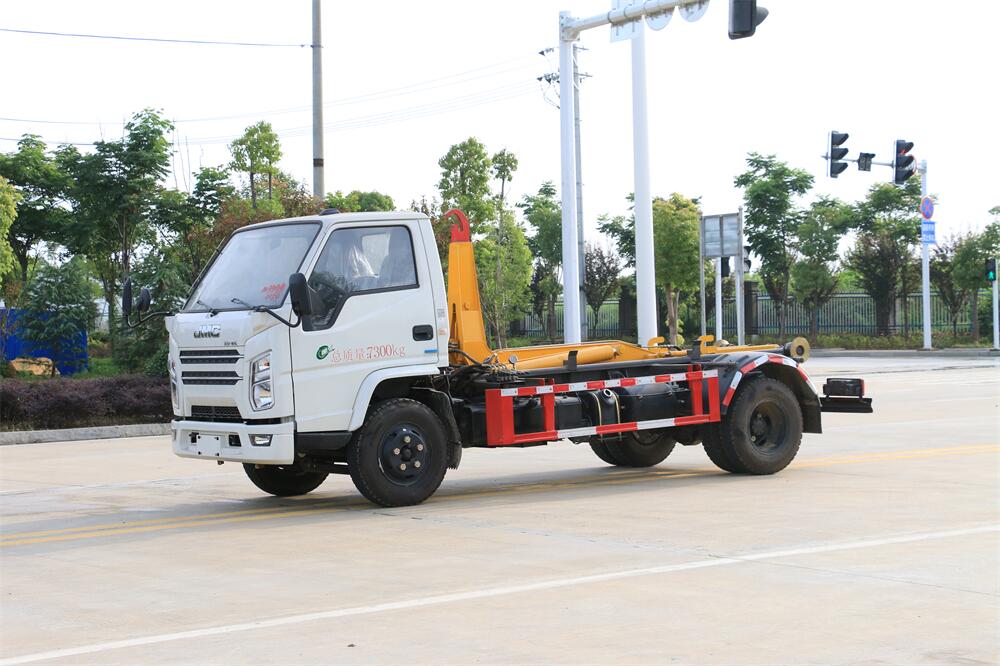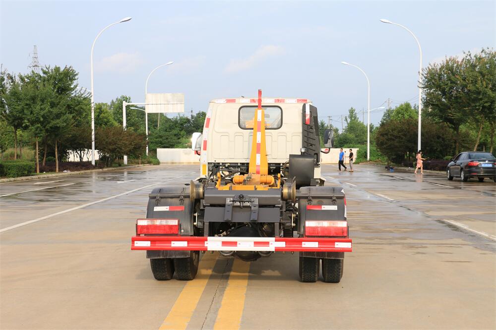 勾臂式垃圾車(車廂可卸式垃圾車)介紹: 車廂可卸式垃圾車又叫拉臂式垃圾車,是一種采用高新設(shè)計(jì)可伸縮的鉤臂,實(shí)現(xiàn)垃圾廂的二次吊裝,自吊上放下,可自行傾倒垃圾的環(huán)衛(wèi)設(shè)備。 拉臂式垃圾車結(jié)構(gòu)簡單,操作穩(wěn)定方便,裝卸效率高,機(jī)械化程度高,節(jié)省人力。鉤臂垃圾車一車可帶多個(gè)垃圾廂,在裝卸的運(yùn)輸過程中可有效地避免二次污染。 拉臂垃圾車采用高新設(shè)計(jì)可擺動(dòng)的鉤臂,垃圾箱由框架、開啟油缸、滑輪、后門和若干加強(qiáng)框架與鋼板焊接而成。調(diào)換貨廂快捷方便,貨廂上帶蓋(倒垃圾時(shí)可翻開),鉤臂垃圾車?yán)鴰w可選用碳鋼、不銹鋼材質(zhì)、內(nèi)部采取環(huán)氧樹脂防腐處理,改裝部分與原車底盤為可分離式,維修方便且保持了原車的機(jī)動(dòng)性及行駛性能。