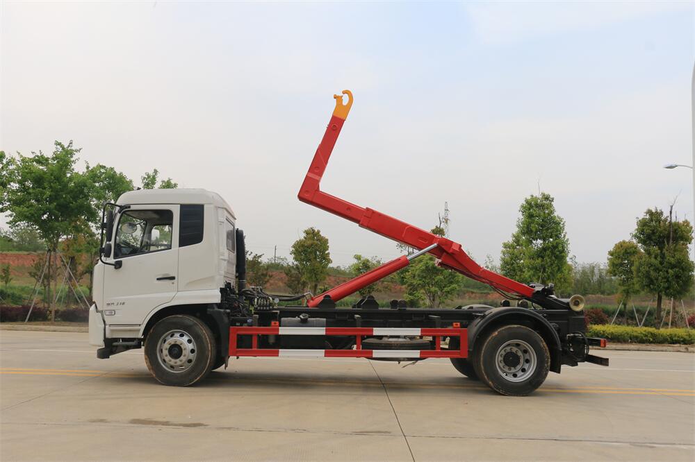 勾臂式垃圾車(車廂可卸式垃圾車)介紹: 車廂可卸式垃圾車又叫拉臂式垃圾車,是一種采用高新設計可伸縮的鉤臂,實現垃圾廂的二次吊裝,自吊上放下,可自行傾倒垃圾的環衛設備。 拉臂式垃圾車結構簡單,操作穩定方便,裝卸效率高,機械化程度高,節省人力。鉤臂垃圾車一車可帶多個垃圾廂,在裝卸的運輸過程中可有效地避免二次污染。 拉臂垃圾車采用高新設計可擺動的鉤臂,垃圾箱由框架、開啟油缸、滑輪、后門和若干加強框架與鋼板焊接而成。調換貨廂快捷方便,貨廂上帶蓋(倒垃圾時可翻開),鉤臂垃圾車垃圾廂體可選用碳鋼、不銹鋼材質、內部采取環氧樹脂防腐處理,改裝部分與原車底盤為可分離式,維修方便且保持了原車的機動性及行駛性能。