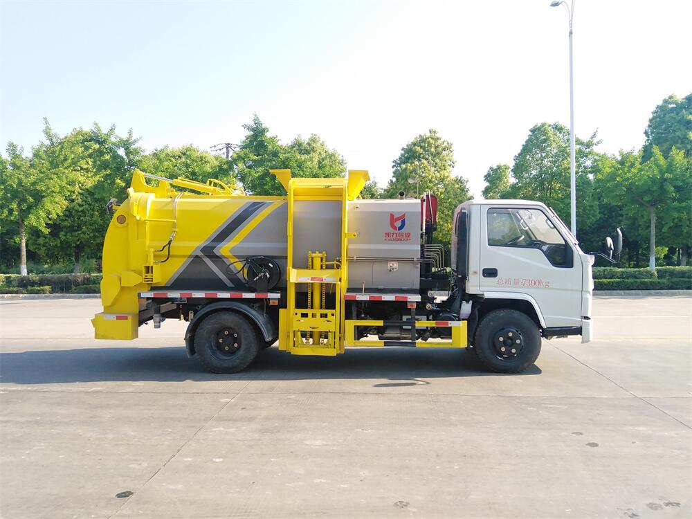 上裝配置:罐體容積6m3,配備120L/240L掛桶提升翻轉(zhuǎn)機(jī)構(gòu),液壓系統(tǒng),后蓋液壓鎖緊開(kāi)啟,罐體可以舉升自卸,尾部帶自流閥;用于運(yùn)輸液態(tài)垃圾,其特點(diǎn)操作簡(jiǎn)單,密封性好,無(wú)泄漏,無(wú)異味;可選裝固液分離功能,推板擠壓功能,常用于餐館的垃圾轉(zhuǎn)運(yùn)處理。