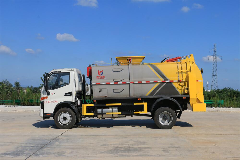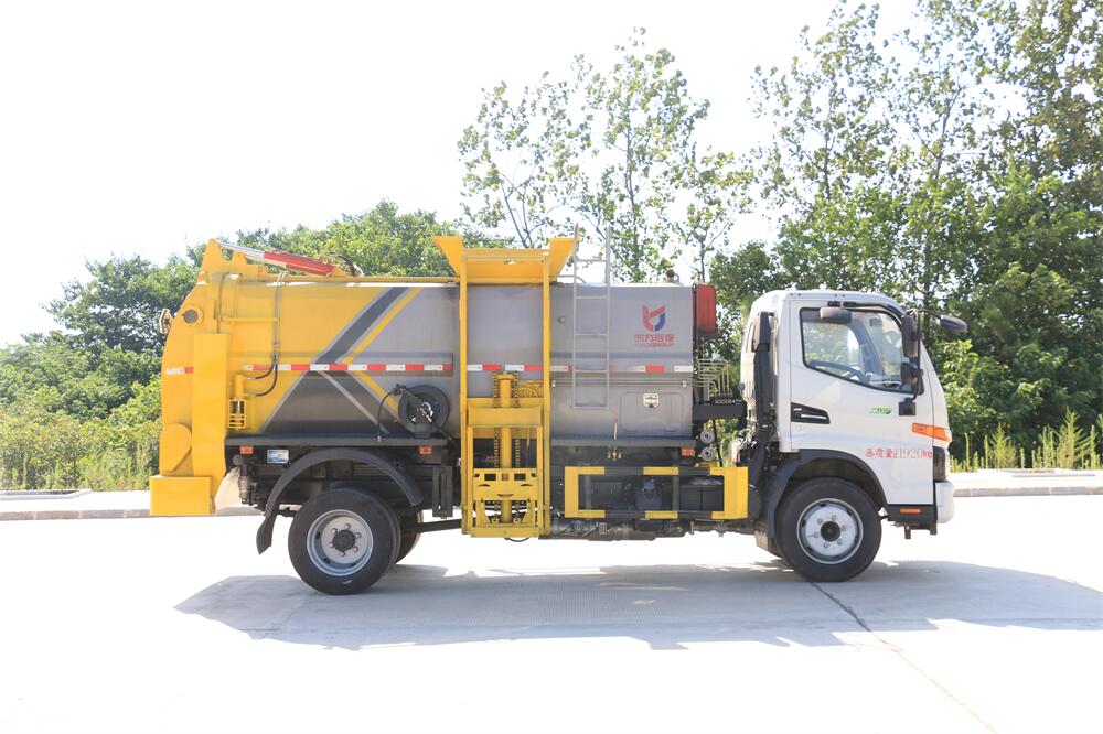 上裝配置:罐體容積8m3,配備120L/240L掛桶提升翻轉(zhuǎn)機(jī)構(gòu),液壓系統(tǒng),后蓋液壓鎖緊開啟,罐體可以舉升自卸,尾部帶自流閥;用于運(yùn)輸液態(tài)垃圾,其特點(diǎn)操作簡(jiǎn)單,密封性好,無泄漏,無異味;可選裝固液分離功能,推板擠壓功能,常用于餐館的垃圾轉(zhuǎn)運(yùn)處理。