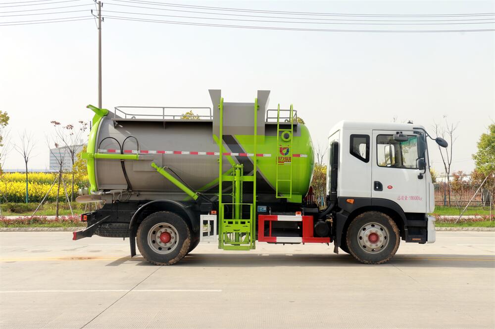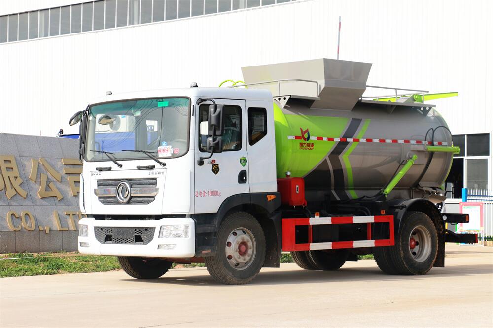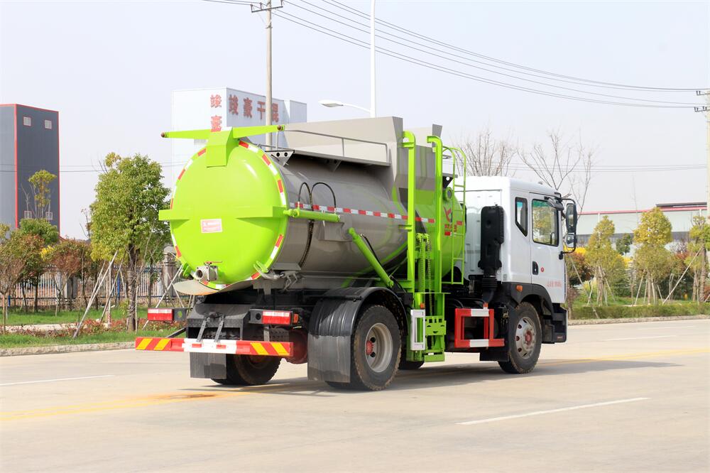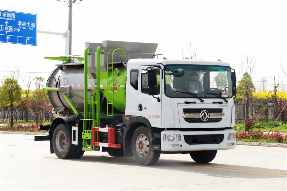 上裝配置:罐體容積10m3,配備120L/240L掛桶提升翻轉(zhuǎn)機構(gòu),液壓系統(tǒng),后蓋液壓鎖緊開啟,罐體可以舉升自卸,尾部帶自流閥;用于運輸液態(tài)垃圾,其特點操作簡單,密封性好,無泄漏,無異味;可選裝固液分離功能,推板擠壓功能,常用于餐館的垃圾轉(zhuǎn)運處理。