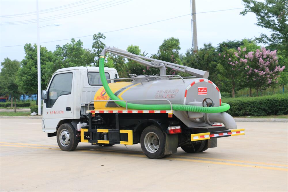 上裝配置:5T真空油泵(SK-9水循環(huán)泵), 油水分離器 ,防溢閥,視糞管,洗水箱,吊桿座(可270度旋轉(zhuǎn)),尾部一個(gè)220排糞口帶駕駛室操作,一根6米吸糞管帶陰陽端快接頭。