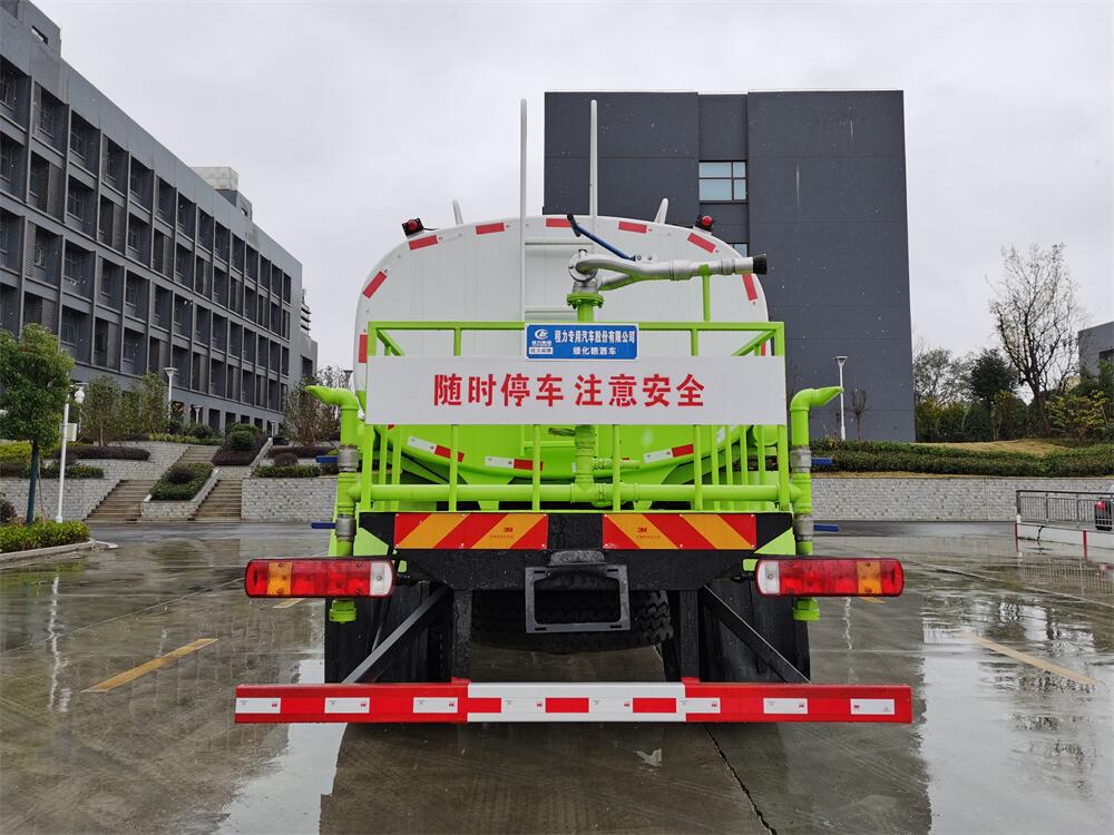 灑水車前裝有鴨形噴嘴或圓頭沖嘴,后面裝有圓柱開灑水噴嘴或蓮蓬頭噴嘴,后部有一工作平臺,裝配有水炮。后部還可裝8個噴嘴(選裝)。
