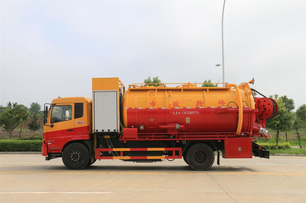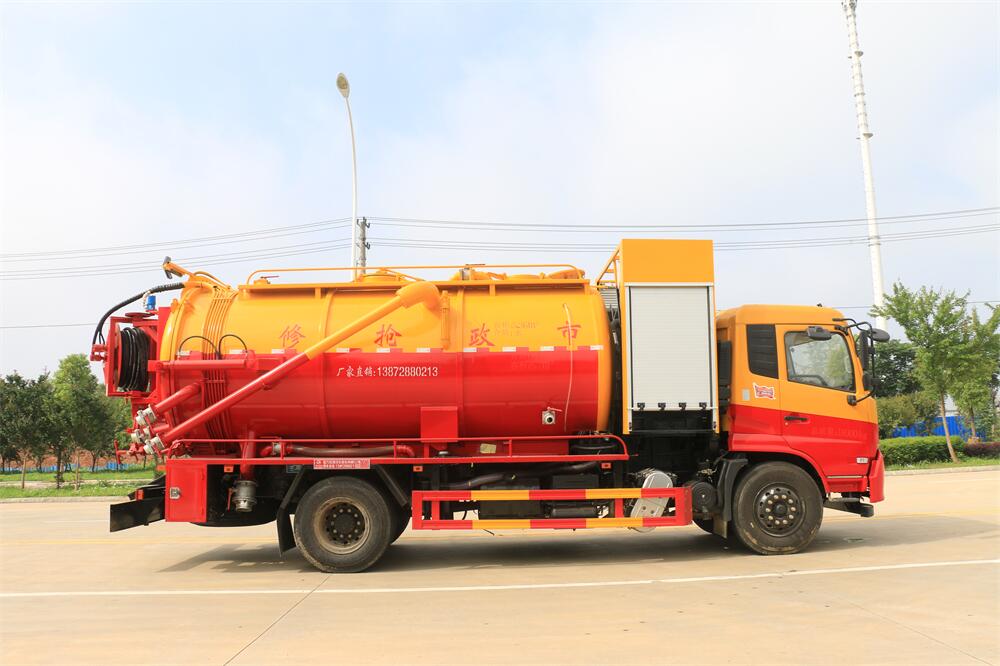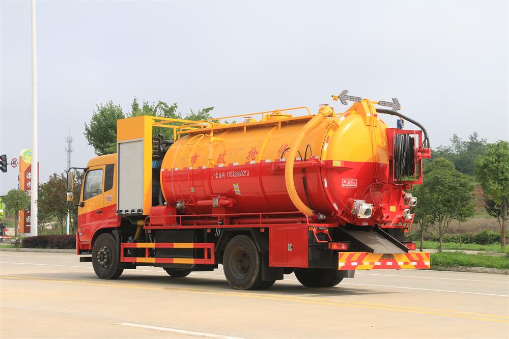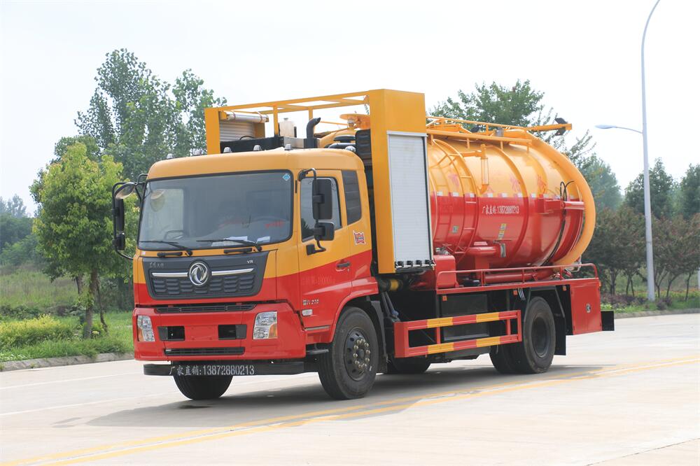 0.0015方清洗吸污車-東風(fēng)天錦15方10+5清洗吸污兩用車-帶副發(fā)動(dòng)機(jī)圓罐紅黃色