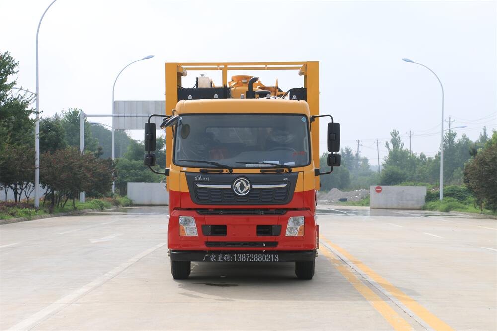上裝配置:清水罐約 5 立方,污水罐約 10 立 方;罐體 8mm 厚,封頭 8mm 厚,水罐、污罐可 互通,用 100 球閥**開(kāi)關(guān);清洗部份采用天 津通潔高壓泵,壓力 19Mpa,流量 215L/min, 配 80 米直徑 22 高壓管帶液壓卷盤;吸污部份 采用濰柴375馬力副發(fā)動(dòng)機(jī)帶山東SK-30水循 環(huán)泵(副發(fā)自帶),吸污罐帶舉升,后封頭焊 死(可選擇后封頭全開(kāi)),尾部加裝一個(gè) 600mm 快開(kāi),罐體后尾部一個(gè) DN150 排污口球閥,一 個(gè) DN100 吸污球閥帶出口盤,一個(gè)視污窗,一 根 10m 吸污管,一套陰陽(yáng)端,壓力表,防溢 閥,箭頭燈,工具箱,淋管裝置,高壓泵帶氣 吹水。配一個(gè) 4.5 公斤水雷噴頭,另帶一個(gè) 80 公分手持洗車噴頭。