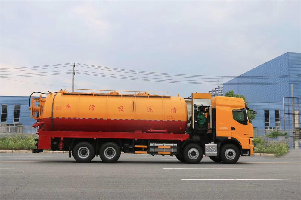 高壓清洗吸污車集沖洗、疏通、吸污、反排功能于一體,它使用于各種液狀、半液態,以及各種溝渠下面的污泥、糞便、廢水等介質的抽吸、裝運、排卸之用,還可用于突發環境污染事故的應急處理。這將大大提高清洗吸污車工作效率,增強作業能力。