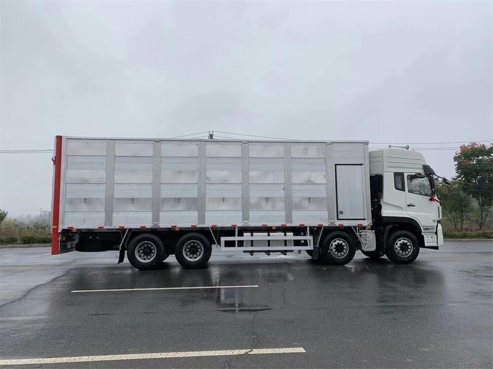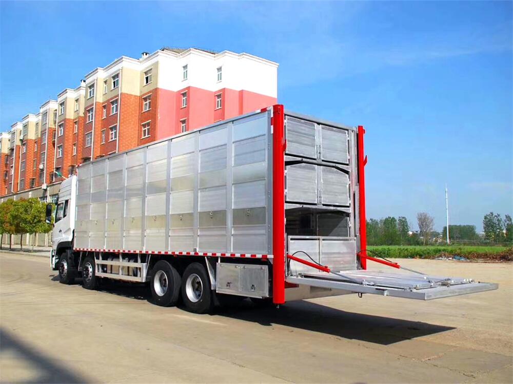 總質(zhì)量31噸,整備質(zhì)量15.5噸,額定載質(zhì)量15.3噸,整車長度11.8-12米,寬度2.5-2.55米,高度3.9-3.98米,貨箱長度8.3-9.3米,箱體鋁合金制作,上中下三層,帶噴淋,喂食功能,可開關(guān)側(cè)窗,高轉(zhuǎn)速防風(fēng)通風(fēng)換氣扇。后部帶液壓升降尾板,可遠(yuǎn)程**。副車架部分采用高強度鋼,能更好應(yīng)對顛簸路面。帶一套備用發(fā)電機。配備冷暖空調(diào),采用全新通風(fēng)設(shè)計,保證前后溫度一致。空氣清新,恒溫,有效保證畜禽成活率。設(shè)計合理,堅固耐用,箱體內(nèi)部清洗方便,無死角,無夾縫。讓消毒更徹底。
