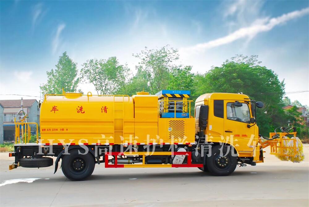 是清洗城市及高速護欄的專用車輛。城市道路護欄清洗車用機械作業取代人工作業,速度,潔凈度有優勢,大大減輕環衛工人的勞動強度,提高清洗效率,使得點線道路養護變為立體養護,使得的整個道路養護沒有遺漏。