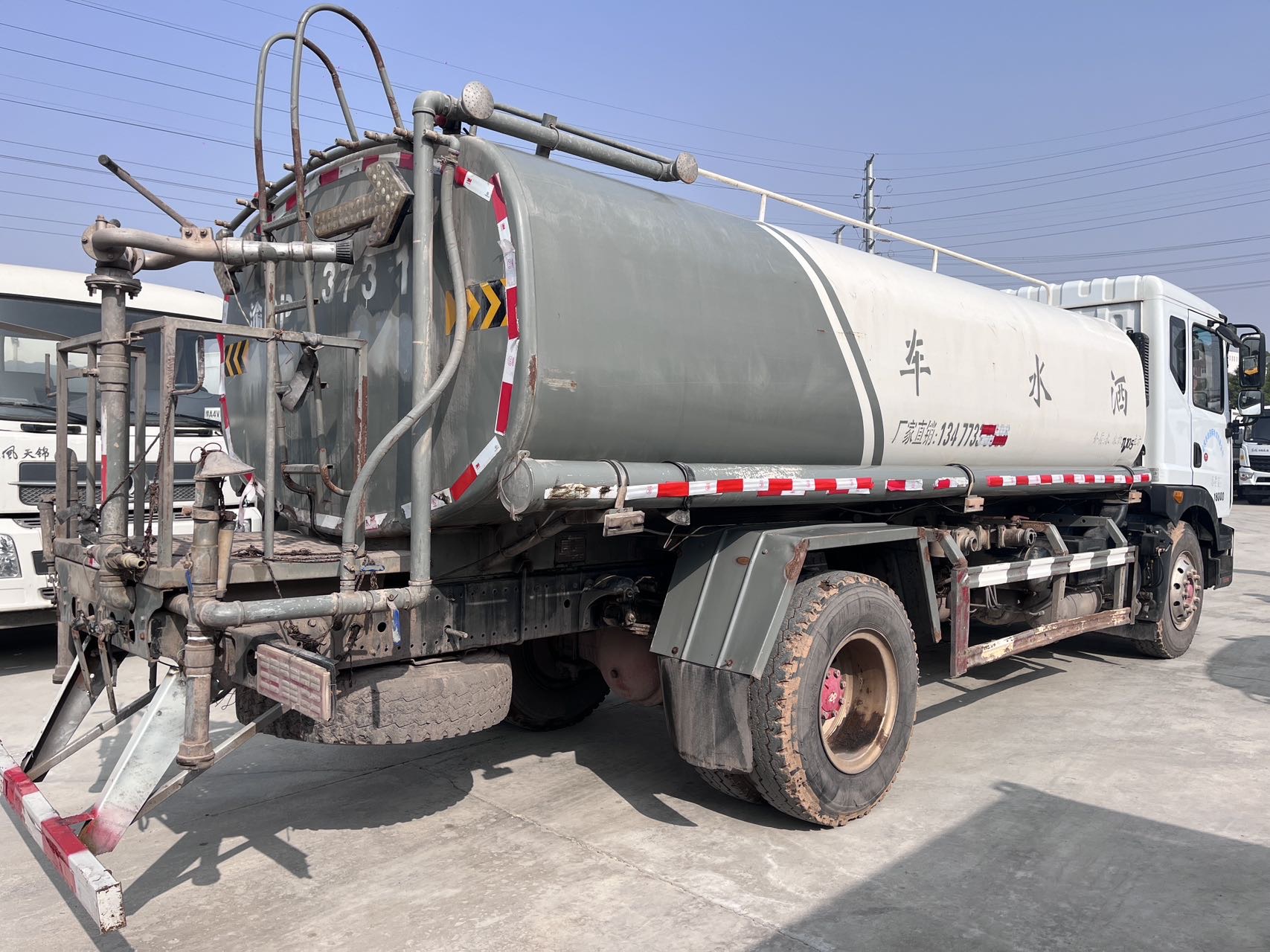 二手10方灑水車 2??年份:2020年5月 3??發動機:朝柴156馬力,國五 4??底盤配置:東風多利卡底盤,3800軸距,245真空胎,六檔變速箱,備胎未