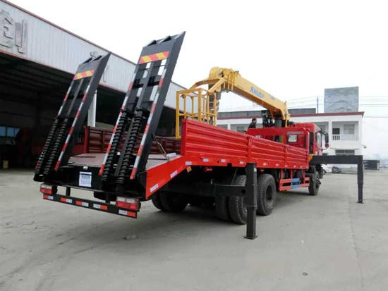 ★隨車起重運輸車采用新型H型支腿,各支腿可單獨調節以調整車架水平,支腿跨距大,整機穩定性好。左右雙向操作,回轉角度:±360度、連續回轉,手油門可調節回轉速度和起吊速度。