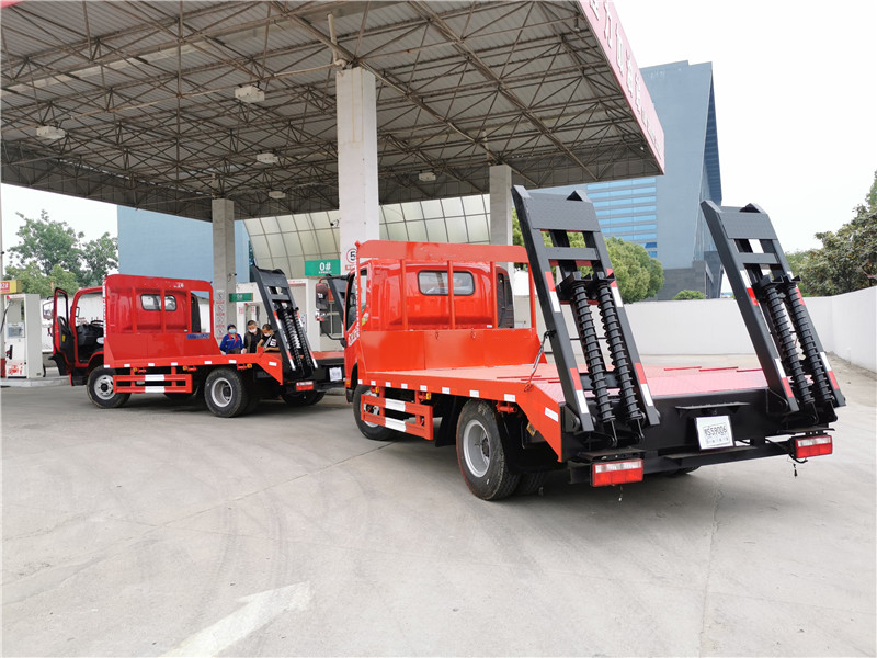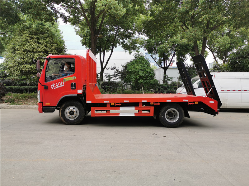 上裝采用五毫米花紋鋼板,100*100方鋼做橫梁,雙簧爬梯,可拉12噸以下挖機(jī)。